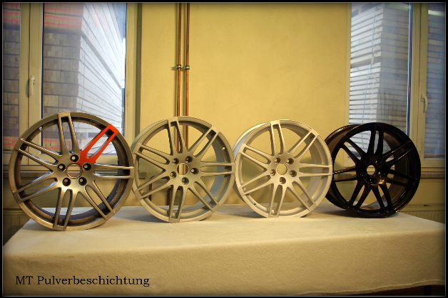 Beschichtet wird als 3-Schichter, mit Korossionsschutz, Hauptfarbe und Klarpulver.